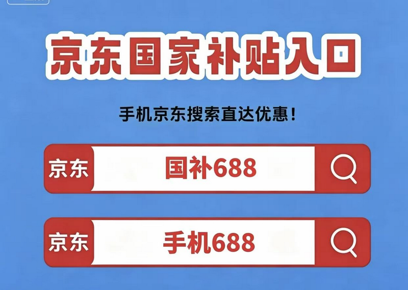 以京东APP为例,用户只需搜索【国补688】(通用入口)、【家电688】,、【手机688】,